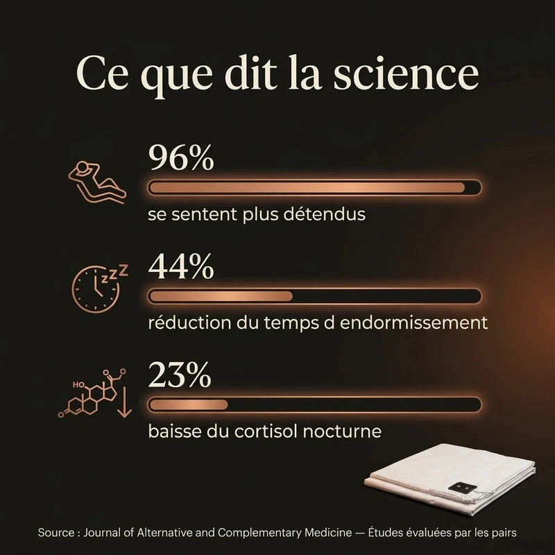 C'est de la physique, pas de la magie. La Terre possède une charge électrique négative — c'est un fait mesuré. Quand votre peau touche une surface conductrice reliée à la terre, les électrons libres pénètrent votre corps et neutralisent les charges positives accumulées.